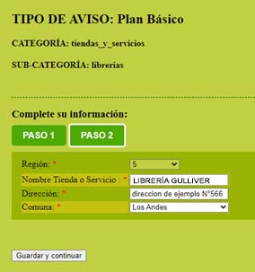 Nota: Sólo la primera vez podrá crear su aviso y asociarle una categoría y sub-categoría, en adelante podrá editarlo dentro de esa clasificación.