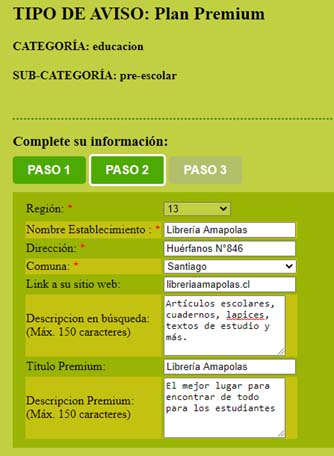 Nota: Sólo la primera vez podrá crear su aviso y asociarle una categoría y sub-categoría, en adelante podrá editarlo dentro de esa clasificación.